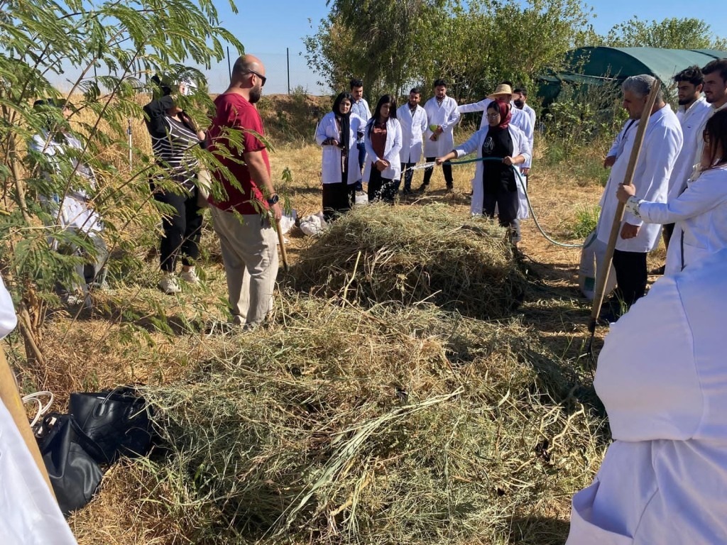 We had an amazing 150 Student’s, Teacher’s and Doctors from the Collage of agriculture/ Salah Alden University / Erbil from different departments as like Soil and water, Gardening, animal resources, in three days, each day different group different student’s , The Training were leaded by Mr. Shakir and Mr. Gergely they gave very basic Permaculture methods and principals also some basic safety instructions about Alqosh Site, we explained the zones, swales and chinabas, Nursery, food forest agro forest then ever we gave them tour about in the site and gave them time for questioning and comments